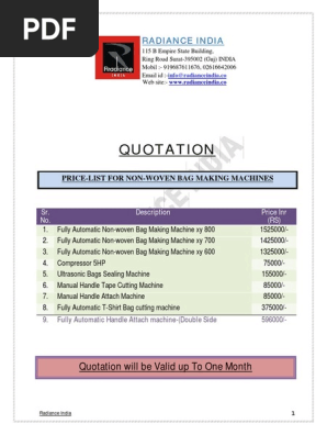 Non Woven Bag Making Machine Price List