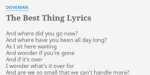 You are the best thing lyrics. Oh because you are the best thing You are the best thing You are the best thing Ever happened to me Now both of us have known love before To come on up promising like the spring just walk on out the door Our hearts are strong and are hearts are kind Well let me tell you what exactly is on my mind You are the best thing You are the best. Our Hearts Are Kind And Are Hearts Are Strong. Lyrics for Youre the Best Thing by Josh Tatofi Ive had my share Of lifes ups downs But fates been kind The downs have been few I guess you could say That Ive been lucky Well I guess you could say That its allBecause of you If anyone.